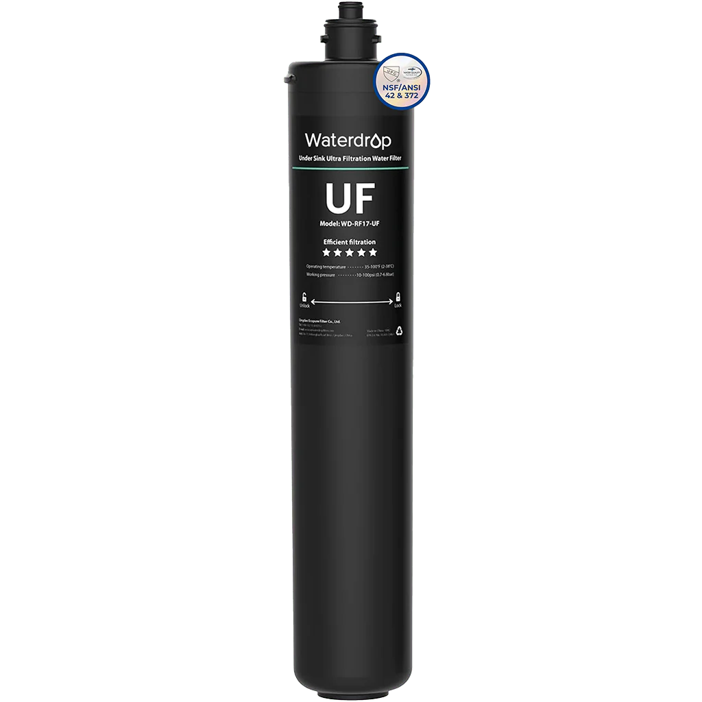 - Waterdrop Undersink Water Filter employs an advanced UF membrane, which reduces bacteria, microorganisms, and any contaminants larger than 0.01 μm.